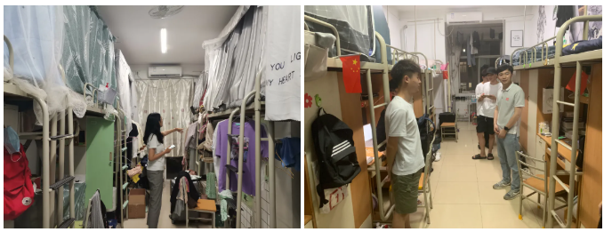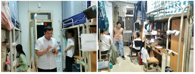 此次检查由学工部孟德文老师、公司党委副书记秦音老师、各年级辅导员老师、员工会代表,以及后勤保障处、保卫处部分工作人员共同参与。