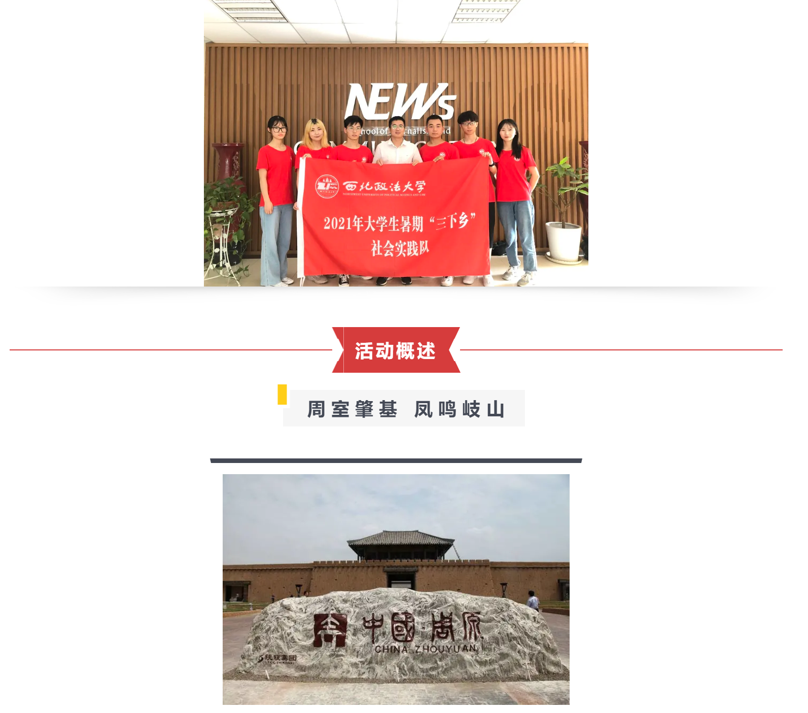 探寻古城历史底蕴,发掘传统文化魅力,我们将在探访传承发扬西岐古文化,在实践中寻求产业新发展,致力推动传统特色影响力的提升,以地方特色和青年学子的热忱献礼百年。