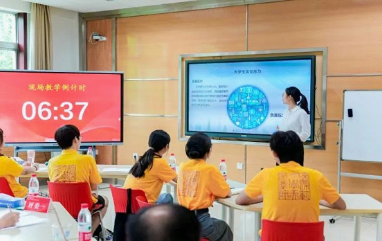 第二届陕西高校员工心理健康教育课程教学大赛共有来自全省87名心理专兼职教师参加了比赛,共有36名教师进入省级决赛,大赛分为说课、现场教学、专家提问三个环节。刘璇以“与压力同行”为题,从“什么是压力”、“老员工常见压力”和“压力管理”三个方面展开讲解。