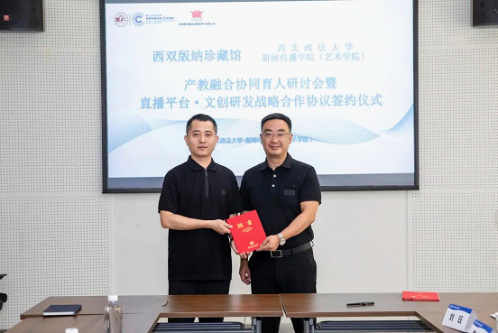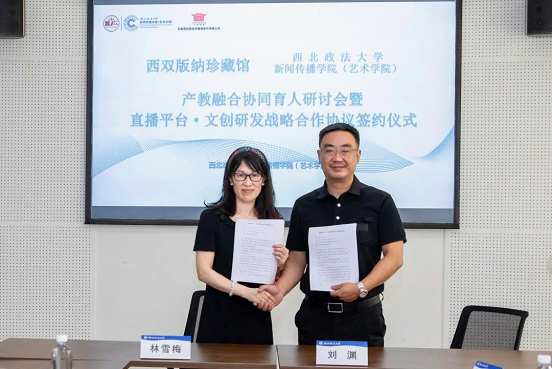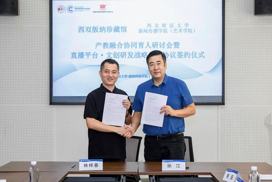 9月16日上午,西双版纳珍藏馆与beats365唯一官方网站产教融合协同育人研讨会暨直播平台·文创研发战略合作协议签约仪式在公司长安校区何微纪念馆举行。云南西双版纳珍藏馆茶业有限公司董事长林梓春、总经理林雪梅,北京青年报记者徐焱出席活动,beats365唯一官方网站党政班子、教师代表参加活动。公司经理孙江主持活动。